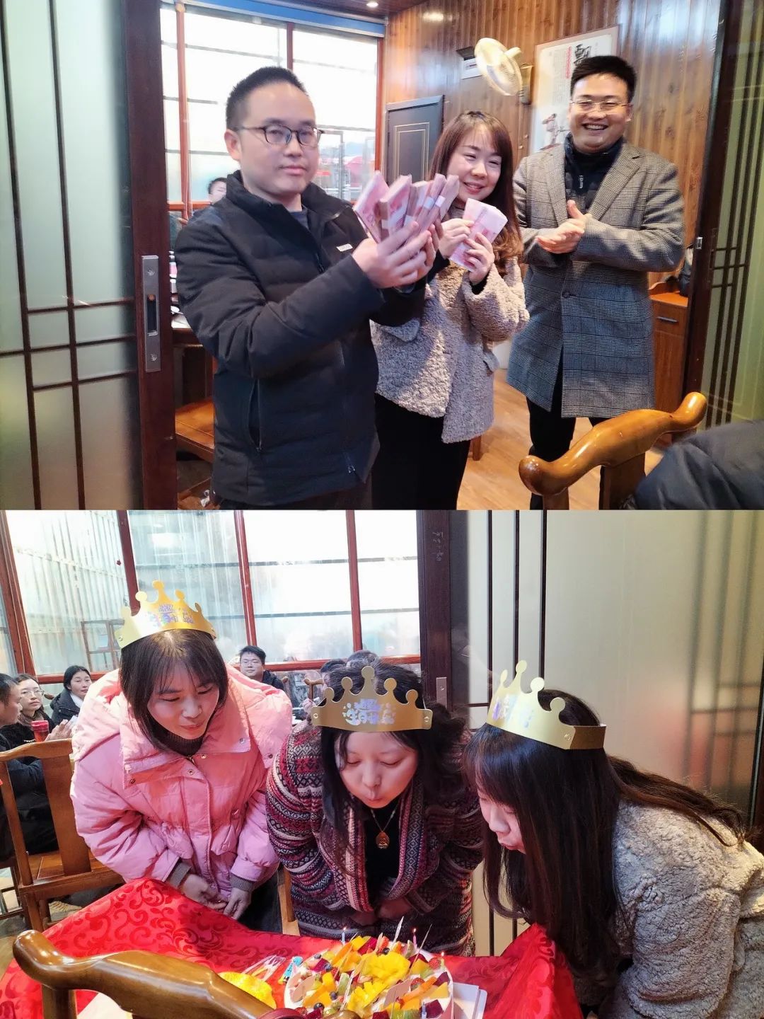 下午,全体员工来到休闲农庄,董事长为商务部小伙伴颁发了奖金,激励大家新年再创佳绩,随后举办了生日会,大家欢聚一堂,共度联欢。
